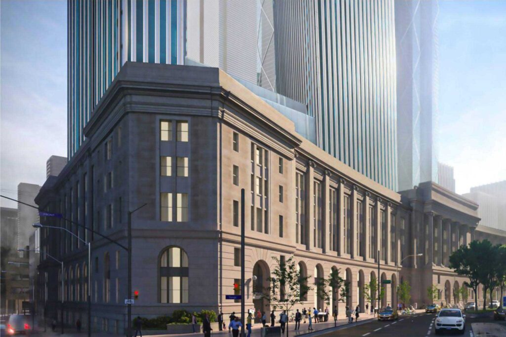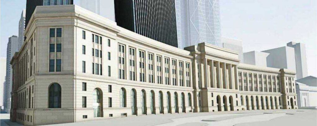 The idea of building on top of the existing five-storey structure isn’t new. In fact, it goes all the way back to 1996, when a settlement between the federal government and the City of Toronto allowed for a 137-metre tower envelope above the building. But economic headwinds and growing heritage protections kept the proposal on ice for years.